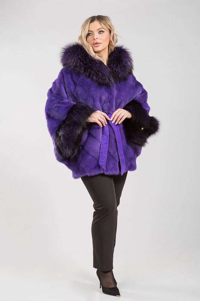 - насыщенный фиолетовый цвет меха, подчеркивающий ее индивидуальность и особый шик;